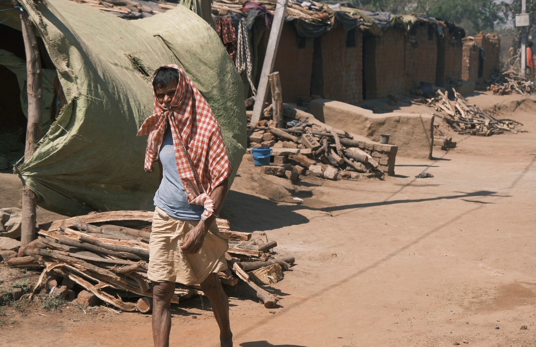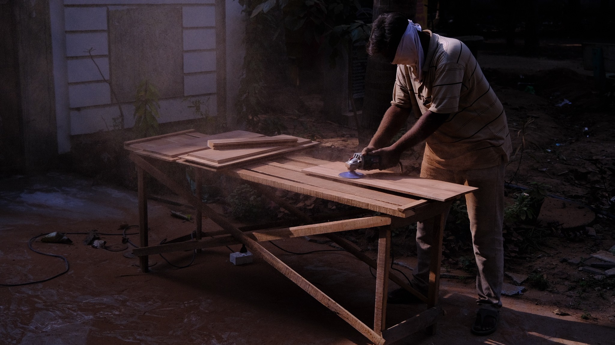 A carpenter works under the morning sun outside his client's residence in Amalapuram, Andhra Pradesh.